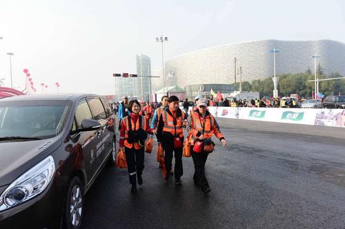 他/她们吃苦耐带,用汗水保障比赛的顺利进行
