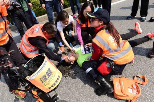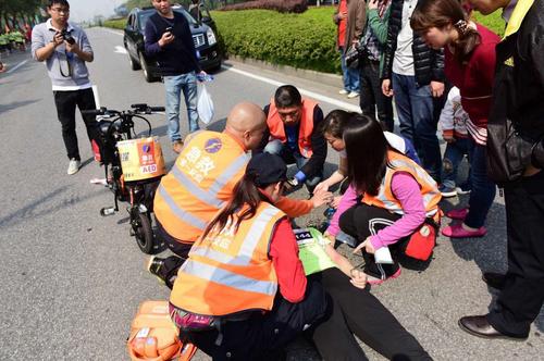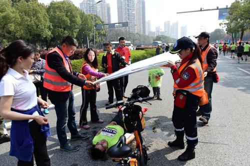 2015.3.29苏州金鸡湖国际马拉松30000人半程比赛10多起的选手倒地,被我们一一救起,无一例死亡,因为有我们急救保障,才有了完美的比赛,上海第一反应、无锡山地救援队、无锡公益救援队,为我们自己感到骄傲!!!看到的,点赞吧!